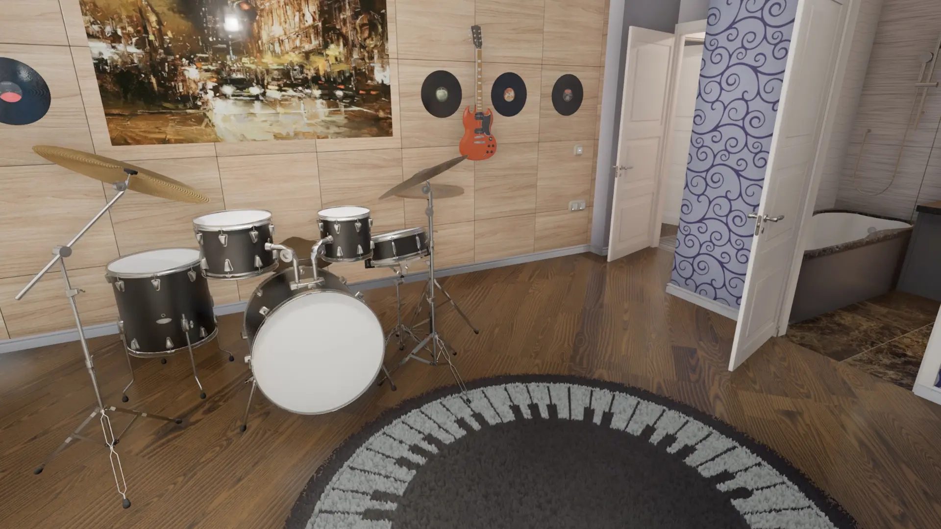 It is easy to move around the territory of the complex or inside the buildings with a joystick. The virtual visit to the apartment is carefully prepared by the artists and modelers of United 3D Labs. Each element of the interior is thought out: there is a TV set and other conveniences in your future apartment, and you can even play the drums if you feel like it.